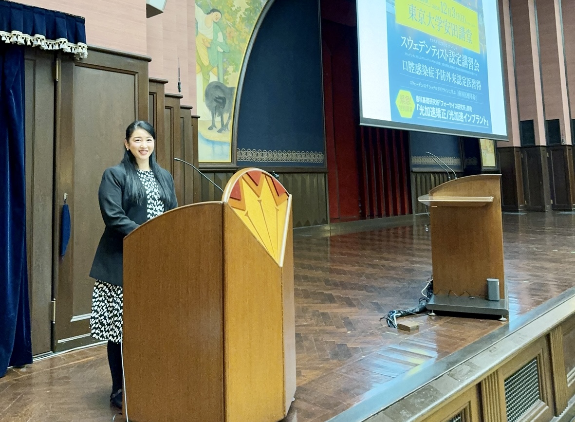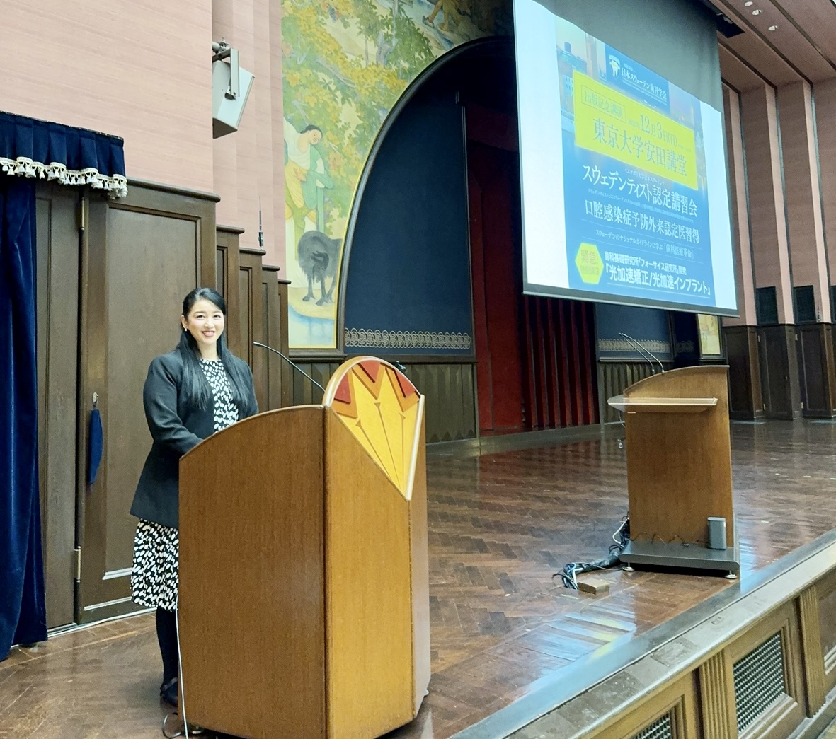 | 12/3(日)東京大学の安田講堂で日本スウェーデン歯科学会セミナーが開催され、山本ミッシェールがバイリンガル司会を務めました。午前9時から午後7時までの長丁場となるセミナーでしたが、コロナ後ようやく海外から先生方も来日され、大盛況だったようです。