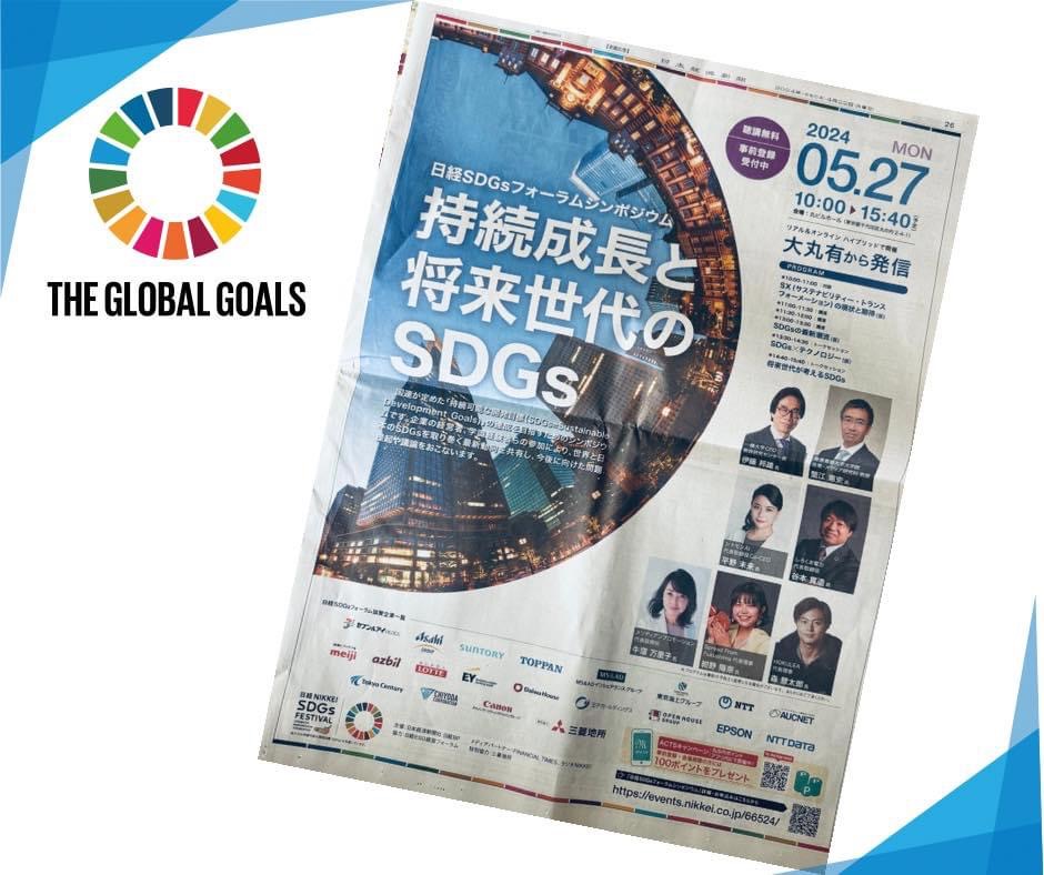 | 今朝の日経新聞36Pに5/27(月)に開催される日経SDGsフォーラムシンポジウムについて大きく広告が掲載されました。概要についてはこちらのリンクよりご覧頂けます。代表の牛窪万里子がモデレーターを務めます。https://project.nikkeibp.co.jp/event/sdgs2024/05/nikkei_sdgs_forum/