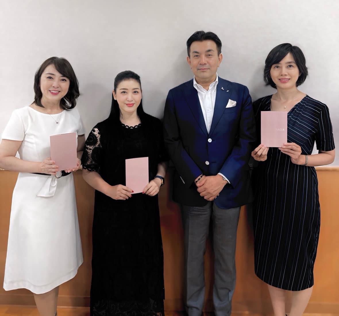 | この度、株式会社ナガホリ様のフラッグシップブランド「NADIA」アンバサダーに牛窪万里子、石井麻由子、山本ミッシェールの三人が就任しました。「NADIA 」は人工的な処理を一切加えないノーオイル、ノーヒートの厳選された素材のみにこだわり、自然界から生まれたありのままの透明感と美しさを誇るジュエリーです。https://nadia.jewelry/今後「NADIA 」の魅力を発信していきます。長堀慶太社長を囲んで記念撮影しました。